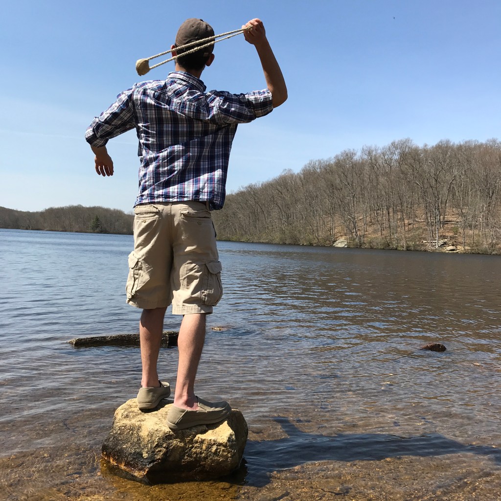 The worst incident was back in 2005 or 2006 when I was about 14 or 15. I was at summer camp, standing by a lake, enjoying a quiet moment after helping make a fire. I had just finished making a new sling and wanted to test its range. Now, testing a brand-new sling by immediately going for maximum distance is generally not a great idea. A new sling needs to be broken in and understood before pushing its limits.